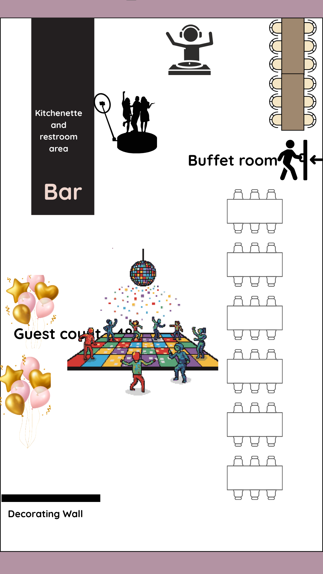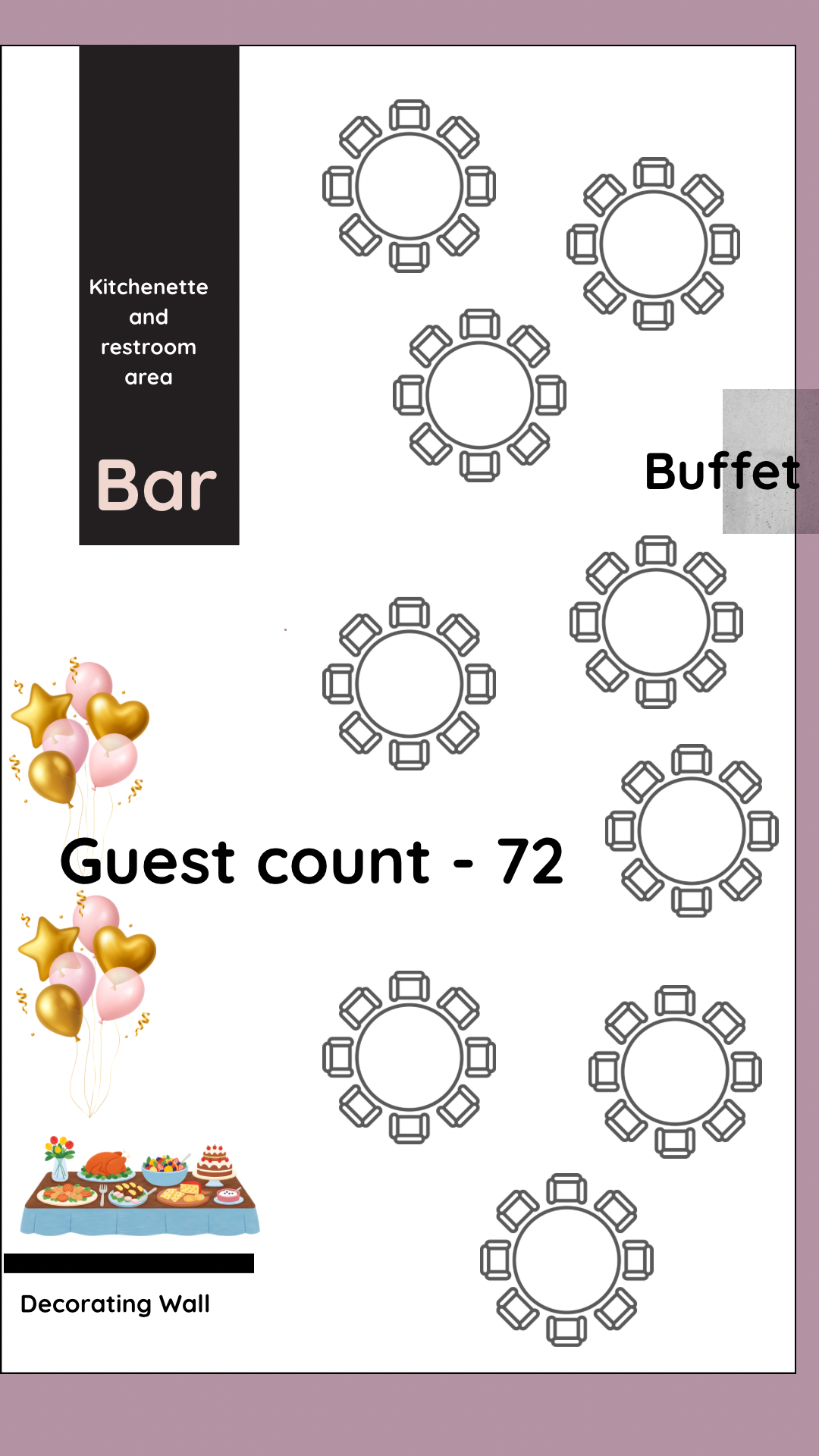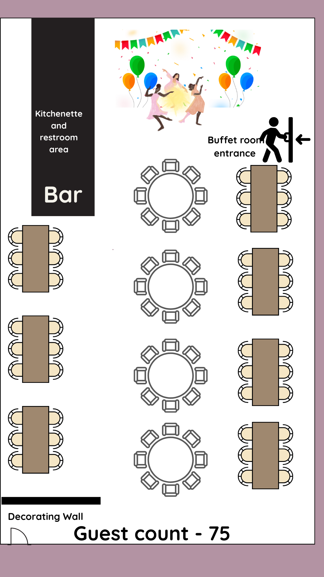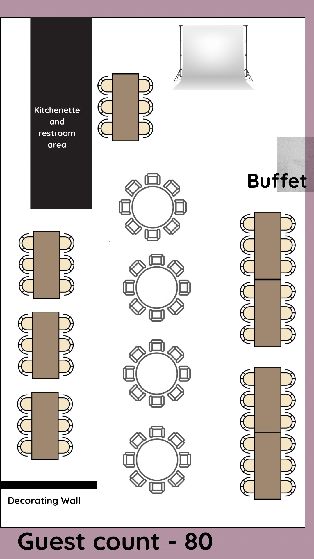 These sample layouts are provided for planning reference. Final layouts are customized based on your event type, guest count, and décor vision.