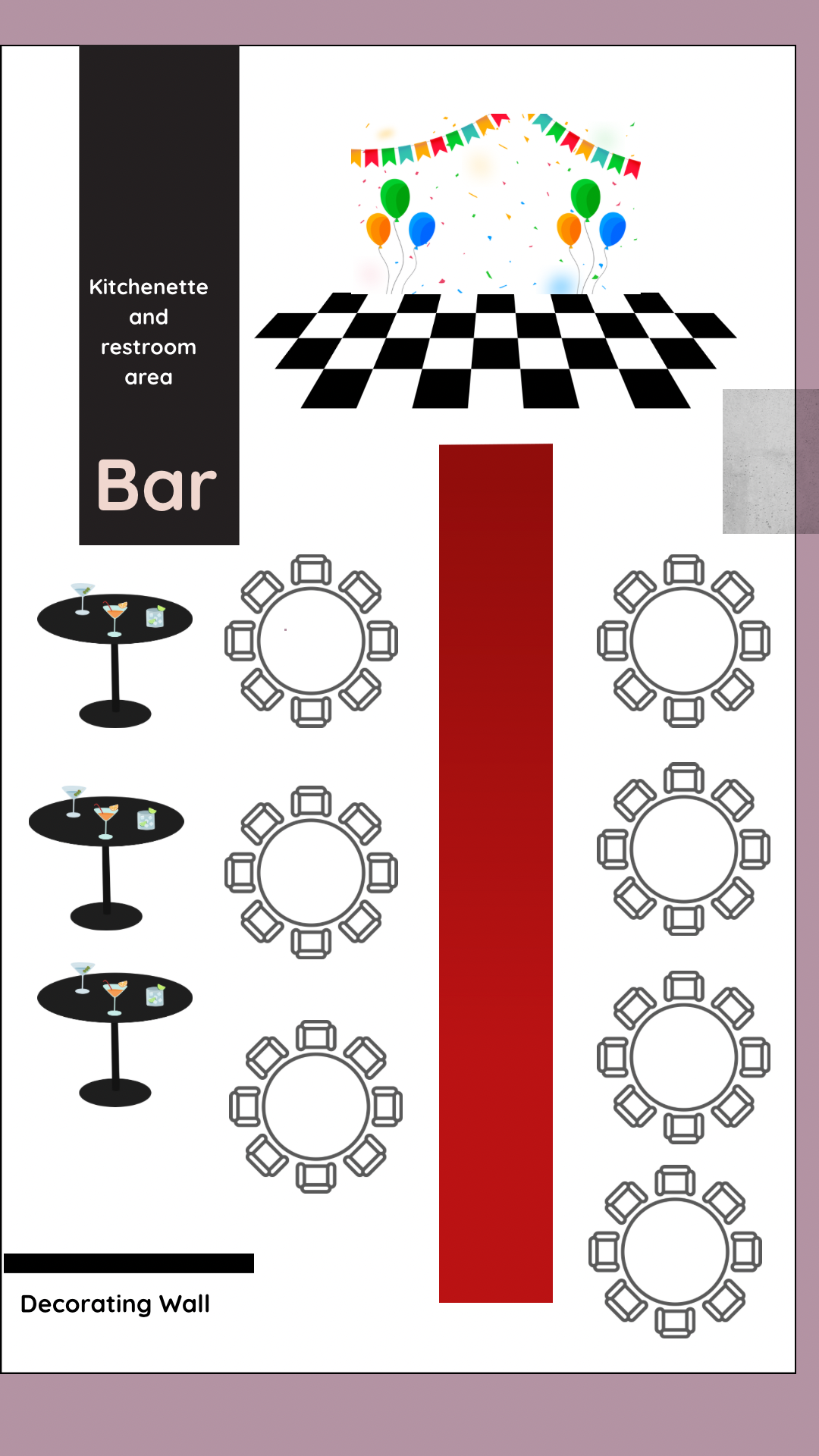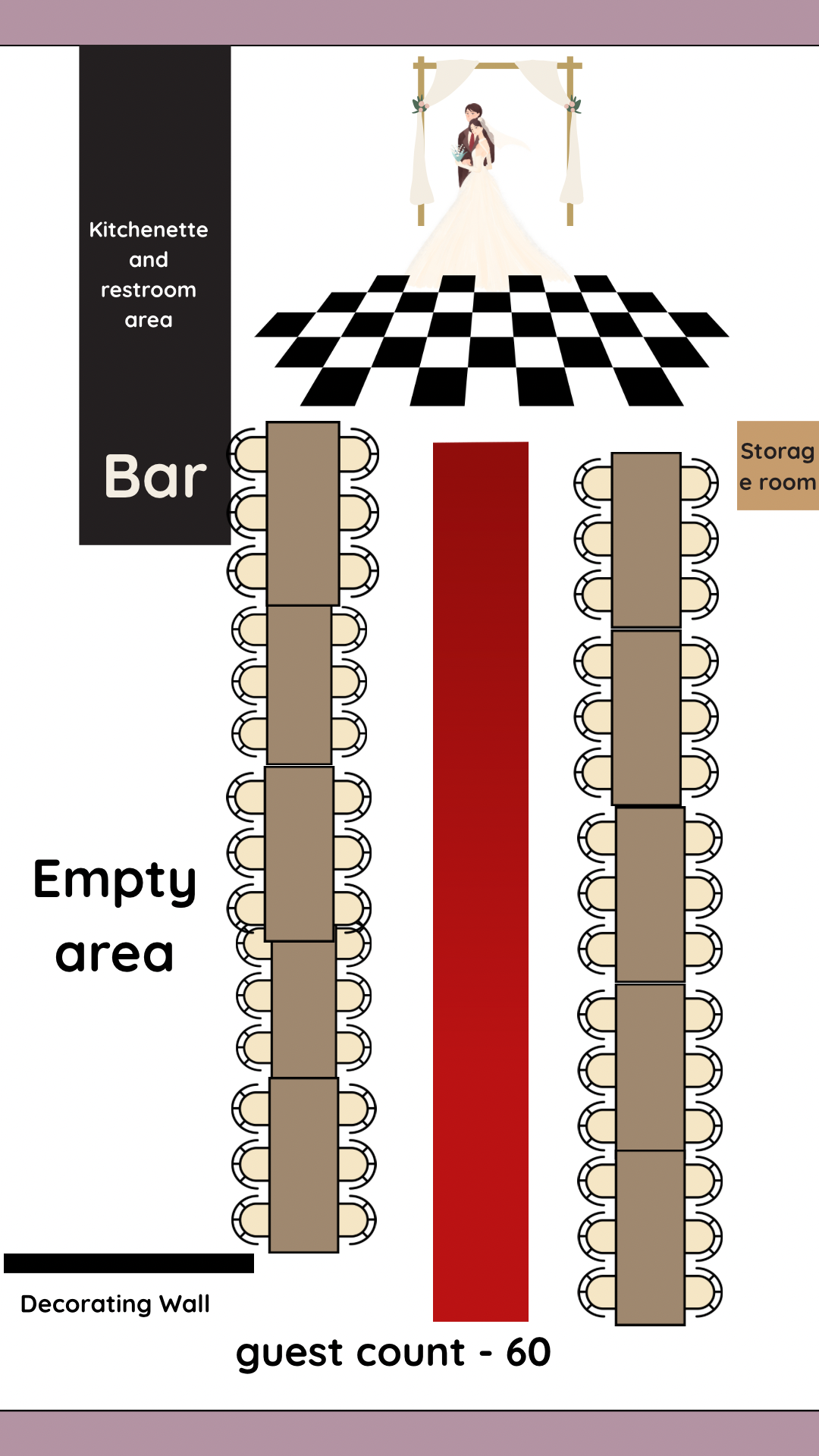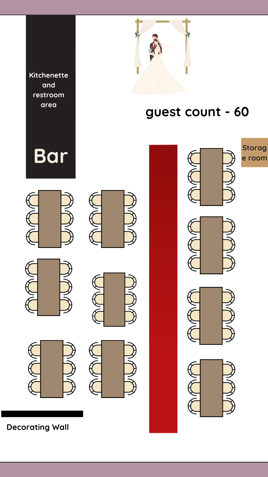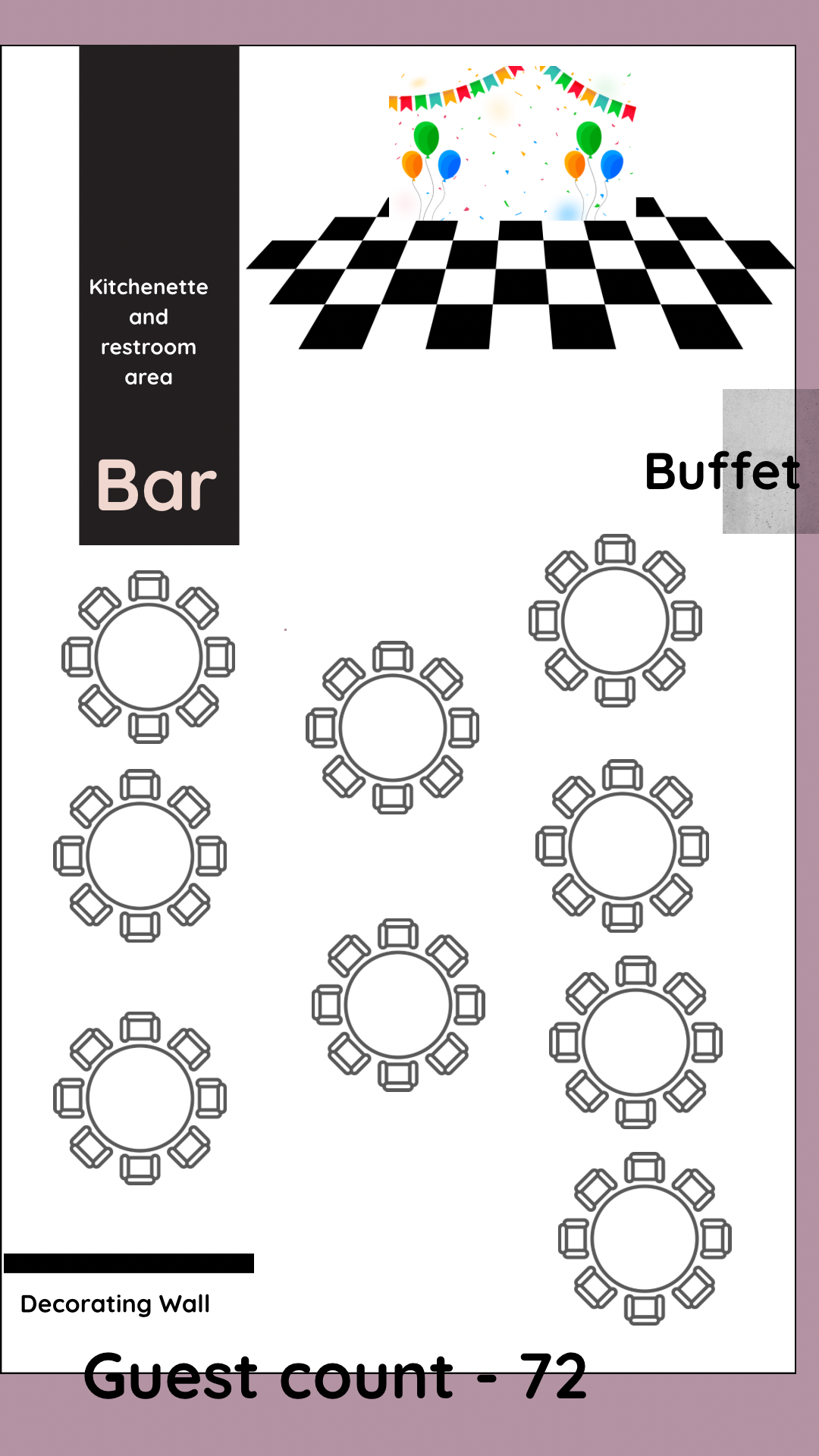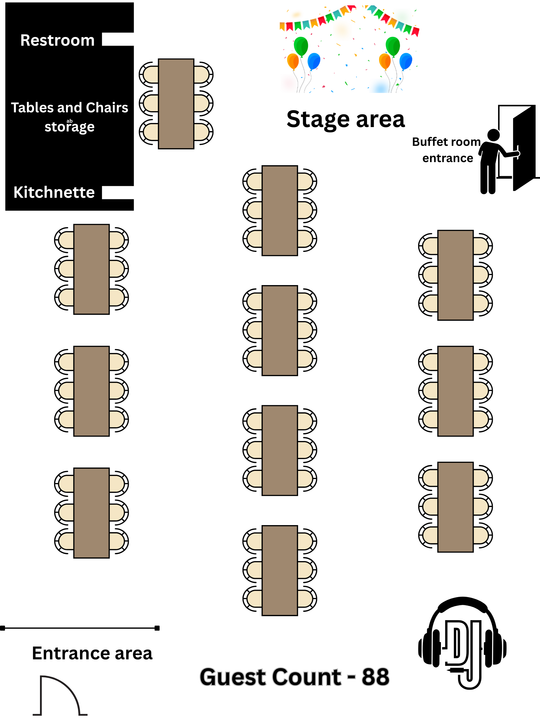 These sample layouts are provided for planning reference. Final layouts are customized based on your event type, guest count, and décor vision.